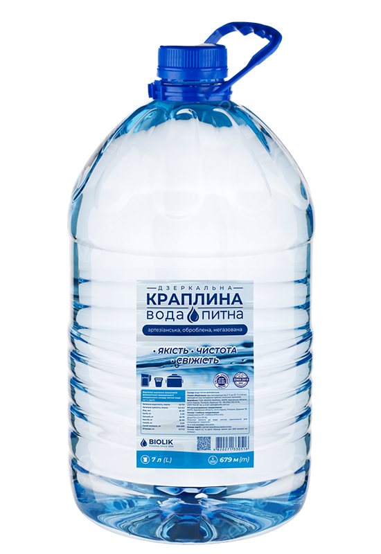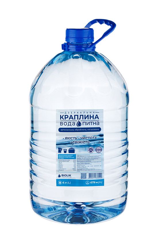 Вода питна «ДЗЕРКАЛЬНА КРАПЛИНА» належить до артезіанських вод, видобуваємо воду з власної свердловини на глибині 679,2 м, яка розташована на альб-сеноманському водоносному комплексі в межах Помірківського родовища міста Харкова, на території підприємства «БІОЛІК ФАРМА».